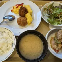 Завтрак был очень обильным. Он находится в трех минутах ходьбы от станции Хиросаки. Поблизости расположено множество отелей. В вестибюле предлагается неограниченный бесплатный кофе. Бесплатный горячий источник на верхнем этаже очень чистый. Помещение небольшое, но удобства в нем весьма обширные.