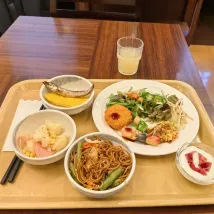 Комната небольшая, матрас очень удобный, в комнате два окна, поэтому света много. Расположение напротив вокзала Хиросаки, очень удобное. Вариантов завтрака не так много, а рис продается в автомате, что интересно🤔