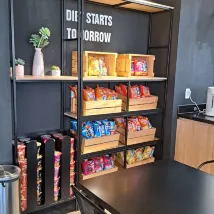 На 9 этаже зона закусок. Там можно взять без оплатно напитки, воду, молоко и др. А также закуски в виде доширака и чипсов.