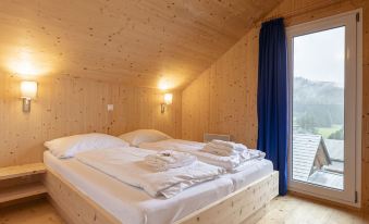Hohentauern: In the 1st Austrian sports village awaits you cosy holiday village "Almdorf Hohentauern by Alps Resorts", 1'300 m a.s.l.. 300 m from the centre, in a sunny position, 15 km from the lake, 300 m from the skiing area. For shared use: natural state property. In the complex: reception, WiFi, central heating system. In Winter: please take snow chains. Parking at the house, public parking. Grocery 300 m, restaurant 250 m, railway station "Selzthal" 8 km, thermal baths "AQUALUX Fohnsdorf" 36 km, bathing lake "Gaishorn am See" 15 km. Golf course (18 hole) 35 km, ski lift, skisport facilities, slopes 300 m, ski school 1.5 km, cross country ski track 300 m. Nearby attractions: Pfahlbaudorf 1 km, Schaubergwerk Oberzeiring 22 km, Red Bull Ring Spielberg 35 km. Well-known ski regions can easily be reached: Lachtal, Kreischberg. Hiking paths: Gesäuse, Triebener Tauern. Please note: In case of good snow conditions, the house is accessible on skis. "Superior 57 Sprudelwanne", 5-room chalet 100 m2 on 2 levels. Spacious and bright, comfortable and tasteful furnishings: entrance hall. Living/dining room with dining table, satellite TV, flat screen and gas heater. 3 double bedrooms. 1 room with 2 beds. Open kitchen (oven, dishwasher, 4 ceramic glass hob hotplates, microwave, electric coffee machine). Bath/shower, shower/WC. Terrace. Terrace furniture. Very beautiful view of the mountains and the countryside. Facilities: Internet (WiFi, free). Parking at the house. Please note: non-smoking house. Smoke alarm.