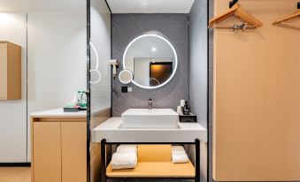 設施完備,前台姐姐也很好,乾淨衞生無異味,智能化非常方便,很安靜,整體非常不錯。環境也不錯,很喜歡燈的設計。