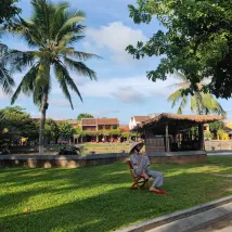 Номер напоминал небольшой домик. Прямо у входа нас встречали маленькие лотосы. Каждый раз, когда мы возвращались и отдыхали в холле, персонал на ресепшене заваривал нам чай! В номере было очень уютно, а по вечерам тихо и спокойно. Предоставляются бесплатные велосипеды, но сам Старый город небольшой, поэтому нам было очень удобно добираться до него пешком. Если нужно в Дананг, можно заказать трансфер прямо на ресепшене внизу (30 000 бат)!