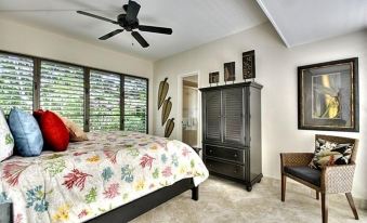 This is a spectacular property designed by award winning architect VLADIMIR OSSIPOFF. It incorporates many features that are his trademark, such as screened full-length louvers throughout to provide flow-through ventilation, a large open lanai, and sliding glass doors and screens that completely hide in a pocket leaving the entire kitchen and great room open to the Lanai. This is a private complex with only six units. It is about 2 miles to the center of Kailua-Kona Village. The Big Island is huge, in fact all the other islands together could fit on it. There is so much to do. You are about 1/4 mile from the open-air Ali'i Gardens Marketplace,where you can browse for local produce, coffee, macnuts,and souvenirs.