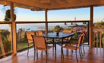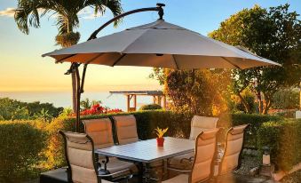 Looking for a secluded home just 10 mins from Kona town? Enjoy the ocean views and sunsets from 970 ft elevation where it's cooler and pick seasonal fruit from the trees on the 2.5 acre shared compound with another home. This 3 bedroom (beds include a king, queen, full, 2 XL twins and a queen sofa bed), 2 bath home sleeps up to 8 people (more with additional charge), has a full kitchen, BBQ, and 2 outdoor dining areas that can seat up to 12 people. The enclosed lanai bonus room can be used as a reading room, office or yoga space. With views of the ocean and Kailua Kona town, you can finish your day by relaxing on the upper lanai and enjoying the beautiful sunsets.About pets:No pets allowed.About checkOut:Check out before 11:00 AM.About children:Children allowed: ages 3-17.About customRules:Quiet hours are from 11 p.m. to 7 a.m..About checkIn:Check in after 4:00 PM.About smoking:Smoking is not permitted.About minBookingAge:Minimum age to rent: 25.About events:No events allowed.