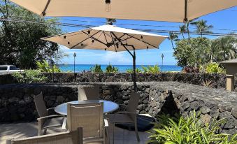 The comfort of home with this two bedroom, two bathroom condo located in the perfect location for your Kona vacation. The ocean is located directly across the street from the complex. Walking distance to Magic Sands Grill and the Poke Shack! The interior decor provides a relaxing environment and the calmness of Aloha. The condo has central AC and ceiling fans in every room for constant comfort. Wi-Fi is provided and can be used throughout the complex. The kitchen is stocked with items necessary to prepare your meals. The living room has ample seating, a large screen smart TV, and lanai access. The master bedroom contains a king size bed, closet, a smart TV, and lanai access. A bathroom with a shower/tub combination is contained within. The guest bedroom contains a queen size bed and ample closet storage. The guest bathroom also contains a shower/tub combination. A Pack-n-Play and portable booster/high chair available in the condo. All linens and towels are provided. The living room also contains a pull out sofa bed. The lanai is a great place to relax and listen to the sounds of the nearby waves, with a beautiful tropical view. There is only a limited ocean view from the lanai. Four beach chairs, one umbrella, and an ice chest are provided for guest use. One designated parking stall is included, which is located just beneath the condo next to the stairwell. The condo is located on the second floor of the building. There is an elevator to the complex, however (6) steps are still required. The facility has a heated community pool and spa and several BBQ grills. Enjoy the Koi Ponds on the way to the pool, it has beautiful landscaping!About pets:No pets allowed.About checkOut:Check out before 11:00 AM.About children:Children allowed: ages 0-17.About checkIn:Check in after 4:00 PM.About smoking:Smoking is not permitted.About minBookingAge:Minimum age to rent: 25.About events:No events allowed.