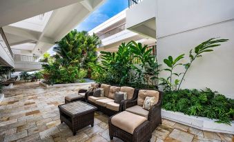 Your King Studio apartment is a private end unit with Central Air Condition, free Wi-Fi, free Phone calls to anywhere in the U.S.and gated Indoor Parking. With its 9’ high ceilings and large Lanai (Porch) it is quite spacious. A welcome kit of soaps and paper products makes you first days very convenient.