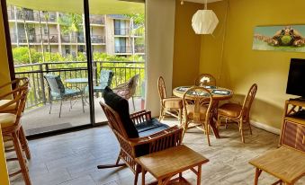 Two lanais are only availablein buildings 3,4,5 one with ocean view allows trade wind to flow thru-cooler nights. Outside lanai has sitting with lounger, tables and chairs.