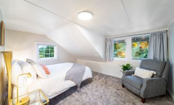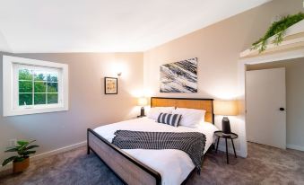 From the hallway, ascend the stairs to the upper level where we have 4 tastefully appointed bedrooms – don’t worry, you won’t need to fight over who gets the best room! All beds have memory foam mattresses and black-out curtains to ensure a good night’s sleep after a long day of adventuring. We have three bedrooms sporting queen beds, as well as one bedroom with a luxurious king platform bed and your own private balcony - step out and have a quiet moment in the morning, listening to the natural world wake up, or sit out with a nightcap to unwind before bed!