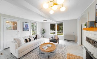 Passing through the kitchen and dining area, you will enter the living room, with walls of windows letting in lots of natural sunlight. Curl up in front of the fireplace, or spread out for game night - this space is designed for relaxation and enjoying time with your friends and family! A home office nook is located off of the living room for those looking to use our high speed wifi for work or play.