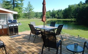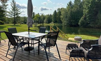 Whispering Pines Cottage overlooks our two acre "Mirror Pond", a deep, spring fed, icy-cold body of water home to our native brook trout (The State "Fish" of Michigan), with a large stand of tall White Pine as a backdrop behind the pond. Our cozy cottage has two bedrooms with queen-sized beds, dressers and closets, a bathroom with shower, living room - with gas fireplace, Wi-Fi, Int4rnet, TV and a large couch for laid-back evenings after a busy day exploring Benzie and Leelanau Counties, a fully equipped kitchen with adjacent dining area which has a "slider" to our deck, overlooking "Mirror Pond", gas grill, and patio furniture. A new deck has been created by the pond with a fire pit and grill. The cottage also has a washer and dryer for your convenience. The closely mowed grass surrounding the cottage and pond provide ample area to stretch your legs and enjoy the property. The bird feeders attract numerous species of birds from the forested area around the cottage who also "kick-out" enough bird seed for the "resident ducks" who come to the grassy areas surrounding the feeders for the treat left for them by their "cousins". Pond visitors include various species of ducks, Blue Herons, and occasional Egret's, and resident deer. Whispering Pines Cottage is at the hub of Our Northwestern Michigan vacation paradise. Going West on Honor Hwy (US-31) within fifteen minutes you'll quickly arrive on the shore of Lake Michigan in the Sleeping Bear National Lakeshore. Going East within ten minutes you'll arrive at Interlochen National Music Camp with its summer student performances as well as international "headliners" contracted by the Interlochen Music Camp to perform during the summer with monies raised from performances going toward student scholarships and operation of the school. Going North up Benzie Hwy 669 will quickly get you into the Sleeping Bear National Park's northern reaches as well as the "Winery Vineyards" of Leelanau County.