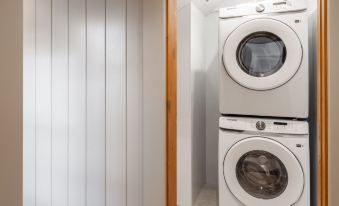 Each bedroom can also accommodate a crib or floor futon for young children. The lower level has a private laundry room to keep ski clothes and bathing suits dry for the next day of adventure, while the upper level has a separate powder room for added convenience.