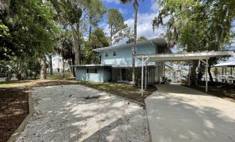 Homosassa River Camp located on the main Homosassa River! ⭐️HIGHLIGHTS⭐️✨Downstairs is a master bedroom with a king bed and en-suite bathroom plus TV✨Fully stocked kitchen ✨Laundry ✨Full Guest bathroom ✨Living room with TV and views of the main river ⭐️Upstairs⭐️✨King bedroom with Tv ✨Third bedroom has 2 queen beds and TV ✨Both rooms open up onto the upstairs porch looking over the main river ✨Full bathroom upstairs ✨New Dock with electric and water ✨Commercial Ice Maker ✨2 kayaks ✨Outdoor grill ✨Fire pit ✨Electric car charger ⭐️Homosassa River Camp is a newly renovated 3 bedroom 3 bathroom home. This home sits in Old Homosassa at the end of Garcia Rd on the main river. The house features a new kitchen, new bathrooms, new furniture, 2 kayaks, commercial ice maker, and a new dock for 3 + boats.