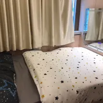Это одна из комнат в многоквартирном доме в центре города. Расположение отличное! ! Мы забронировали номер на двоих, но я думаю, если вы крупный человек, то для двоих может быть тесновато... На фотографиях комната выглядит просторной, но на самом деле это очень маленькая комната. Помещение было размером с кладовую и в нем находились туалет, душ, кровать, а также небольшой стол и стул. Мы миниатюрные и управляемые, но кровать, вероятно, была односпальной. Я попросил номер с окном, чтобы можно было подышать свежим воздухом, но без окна может быть душно. 😭 Расположение отличное, если вы просто хотите поспать, но стены такие тонкие, что слышно, как люди храпят... ха-ха. Серьёзно. Кроме того, есть одна вещь, о которой я хотел бы, чтобы вы не удивились, когда войдете: она находится в комнате *******. Если вы пойдете туда вдвоем, будет очень неловко. Вы не сможете оставить свой багаж заранее, но примерно за 15 минут до времени регистрации вы получите электронное письмо с паролем от первой двери, номером вашей комнаты и паролем к ней, так что не волнуйтесь! ! Расположение великолепное! ! ! Честно говоря, это лучшее место, так что если вас ничего не волнует, то это то место, куда вам стоит пойти. Цена ниже, чем в соседних районах, и вам не о чем беспокоиться, потому что это не Chungking Mansions! ржу не могу