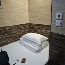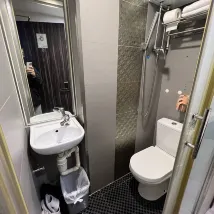 Комната очень, очень маленькая. Три стороны кровати касаются стены. При открытии и закрытии двери нужно сидеть на кровати, иначе дверь невозможно открыть. Вы можете коснуться стены, сидя на унитазе.