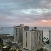 Отель расположен совсем рядом с пляжем Вайкики, менее чем в 5 минутах ходьбы. Поездка на Uber из аэропорта в отель обойдется в 31,9 доллара. Удобства в отеле полностью укомплектованы и содержатся в чистоте. Зубные щетки и пасту можно попросить на стойке регистрации. В вестибюле есть автомат с питьевой водой, а обслуживание очень дружелюбное. Мы забронировали «номер с полным видом на море» и нам дали верхний этаж. Угол обзора моря был немного не таким, поскольку отель не выходил окнами прямо на пляж. Это было нормально, потому что мы играли на улице и не всегда оставались в комнате. Завтрак не шведский стол, а блюда, приготовленные по заказу, поэтому вам не придется бронировать номер с завтраком, что может существенно сэкономить.