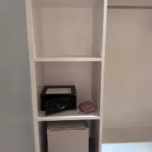 Есть место для приема пищи и кухня,но все неудобно сделано и работает только вентилятор,без кондиционера.