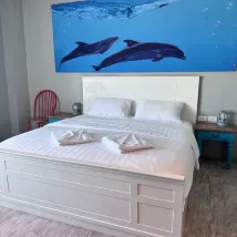 Очень важно забронировать номер с видом на море для семейной поездки. Вы можете наблюдать красивый восход солнца над морем из гостиничного номера. Расположение отеля очень хорошее. Рядом с главной улицей находится 711. В десяти минутах ходьбы находится большой супермаркет Tops. Он находится в нескольких минутах ходьбы от башни с часами, делового района аквапарка, ночного рынка Хуахина, Centenary. Железнодорожный вокзал, пляж Хуа Хин и т. д. Отель очень тихий в переулке, внизу есть микроволновая печь для обогрева. Однако было неудобно давать только одну карточку от номера. В ванной была только одна мусорная корзина, чтобы все выбросить. Такое ощущение, что не было никакой классификации мусора. В последний день я нашел в ванной большую маленькую собачку.
