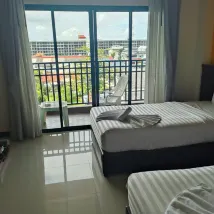 Рядом с пляжем, минут 10 пешком. Вокруг много 7.11 и массажных салонов. Номера хорошие, цена выгодная, есть балкон, тихо и не шумно.