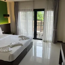 Номер вполне приличный, очень чистый, есть небольшой балкон, на котором очень удобно сушить одежду. С балкона видно железнодорожный вокзал Хуахина. Их очень удобно посещать ночные рынки и торговые центры. -11 слева и справа от отеля. Справа при выходе. Это просто больница и недалеко от пляжа! В принципе, туда можно ходить! Но впервые в Таиланде я столкнулся с кем-то, кто попросил залог за карту номера, а карту необходимо вставить в номер, чтобы было электричество. После обсуждения с сотрудниками стойки регистрации они не согласились дать дополнительную карту номера. А еще они сказали, что кондиционер нельзя было включать постоянно, поэтому каждый раз, когда я возвращался из первой поездки, было очень жарко, мне приходилось включать кондиционер как минимум на два часа, чтобы охладить комнату. . То же самое касается и холодильника! Когда вы вернетесь из поездки, холодные напитки уже будут теплее обычного! А еще бассейн хороший! очень чистый