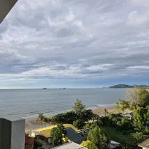 Останавливаюсь в отеле «Голубая волна» второй раз, расположение отеля мне нравится. От отеля можно спуститься к пляжу Као Такиаб, там есть бассейн и фитнес-центр, но здание отеля довольно старое. Но мы в порядке. Потому что спальня довольно большая. Вид с балкона номера на море красивый.