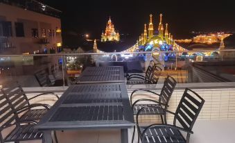 民宿就在歐樂堡旅遊度假區(八仙過海)大門正對面(直線距離目測70米左右)。海景房窗外就是歐樂堡異國風情建築,夜景和晨景都非常漂亮。