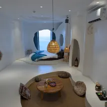 В целом, я вполне доволен. Персонал дружелюбный и заботливый. Он находится прямо у моря. На верхнем этаже также есть терраса в стиле Санторини, где можно сфотографироваться и зарегистрироваться. Это настоящий сюрприз! Спасибо, дорогой! 🌷