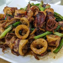 Вечером мы пошли в ресторан внизу, чтобы поесть морепродуктов, а на обед пошли в чайный ресторан, чтобы попробовать жареный рис. Они были доступными и вкусными.