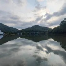 В отеле есть горы, озера и водопады.Окружающая среда очень тихая, воздух свежий.Номера чистые и аккуратные, в стиле строительства Цзяннань. Жаль, что парковка у отеля маленькая, машины приходится ставить на обочине, неудобно идти с чемоданами в вестибюль.