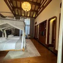Отель выполнен в китайском архитектурном стиле и очень поэтичен, словно пейзаж, написанный тушью. Когда мы вошли в вестибюль третьего корпуса отеля, менеджер по лобби Сяоё вежливо спросил, забронировали ли мы номер, и предложил нам чай. Менеджер стойки регистрации Сяоши также забронировал нам хороший номер. Моя семья осталась очень довольна, и наше пребывание было очень приятным.
