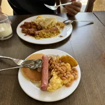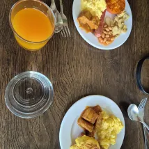 Мы хорошо поужинали в отеле. Завтрак был простым, но достаточным, чтобы начать день.