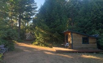 Tent is going back up this week! Winter is over... ! The tent has a queen bed with pullout couch. The cabin has a queen & twin bed. Both sleep up to 3 (cramp but very cozy!). A unique experience awaits you at Humboldt's coolest Glamping spot! Come "rough it" on your own private 3 acre campsite. The views are amazing from your deck as you sip your coffee in the morning or a beverage in the evening! Don't forget the star show at night. There is a flushing toilet, bathroom sink and the best hot water outdoor shower around. Need more space, rent the 5 star rated home (70+ reviews - vrbo #1285203) on the property. Rent one or rent both (discount available for both)!About pets:No pets allowed.About checkOut:Check out before 11:00 AM.About children:Children allowed: ages 0-17.You're in the wilderness so a close eye is needed..About checkIn:Check in after 3:00 PM.About smoking:Smoking is not permitted.About minBookingAge:Minimum age to rent: 21.About events:No events allowed.