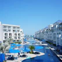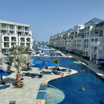 Отель относительно новый в Египте, и пребывание в нем превзошло все мои ожидания. В отеле есть 5 бассейнов, один из которых с подогревом, что очень комфортно в Хургаде при температуре более 20 градусов. Так как это отель с системой «все включено», питание здесь очень разнообразное. Помимо завтрака, вы в любое время можете отведать свежеиспеченную пиццу и пасту, приготовленные на месте. Во время нашего пребывания мы также пробовали свежезажаренные бараньи голени, креветки и рыбу. Пляж отеля с видом на Красное море также прекрасен. По вечерам проходят живые выступления, так что даже если вы лежите в отеле, скучно не будет.