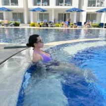 Отель расположен очень близко к аэропорту, примерно в 4 километрах, и в 8 километрах от города. В целом, отель располагает приятной атмосферой: пляж, бассейн, море и вид на восход солнца. Удобства в номерах средние, примерно на уровне бюджетного отеля в Китае. Трёхразовое питание очень хорошее, с закусками и перерывами на чай. Завтрак очень обильный, а по вечерам проходят представления. Это хорошее место, чтобы остановиться на несколько дней и расслабиться. Приезд из Китая был немного хлопотным: между вылетом и регистрацией прошло больше 24 часов.