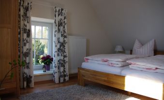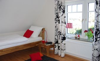 It is only 3 km to Husum. Husum is the center of the large national park Schl.-Holst. Wadden Sea. The harbor with its many restaurants and small shops invites you to stroll. Just outside the city you will find the beautiful 18-hole golf course "Husumer Bucht", which invites you to play golf. Your sports equipment can be locked in the garden shed. Of course, two parking spaces are available for you on the property of about 800 square meters. Exclusive self-catering accommodation.About pets:Pets allowed: dogs (limit 2 total).Hunde