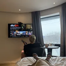 객실과 화장실이 모두 넓어서 좋습니다. 바로 앞에는 호수뷰가 펼쳐지구요, 근처 스타벅스에서 보는 호수뷰 노을뷰도 일품이에요. 주변에 산책로가 잘되어 있어서 밤에 산책하시는 분들 많습니다.