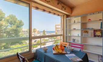 Residence "Les Regates", 5 storeys. In the resort Hyères, 100 m from the sea, 550 m from the beach. For shared use: children's playground, public parking 450 m. Shop, grocery, restaurant, bar, bakery, café 100 m, bicycle rental 300 m, bus stop 50 m, sandy beach "centurion" 550 m, diving center 150 m, outdoor swimming pool 4.5 km. Sports harbour 150 m, surf school 500 m, sailing school 150 m, riding stable 1 km, walking paths from the house 1.8 km. Nearby attractions: Kiddy parc 2.3 km, Magic World 2 km, Olbus Riquier 4.6 km, Speedkart 1.8 km, Route du Sel 5.1 km, Jardin zoologique La Londe 15 km. Hiking paths: Espace Nature des vieux Salins 5.8 km. Please note: the keys‘ handover takes place by the agency INTERHOME in Hyères sur le port. Airfield close by. 1-room studio 22 m2 on 3rd floor. Bright, comfortable and cosy furnishings: living/dining room with 1 double sofabed (140 cm, length 190 cm), TV (flat screen). Exit to the loggia. Entrance hall with 2 wall-trunk beds (80 cm, length 190 cm). Kitchenette (2 ceramic glass hob hotplates, toaster, kettle, microwave, electric coffee machine, Capsules for coffee machine (Expresso) extra). Shower, sep. WC. Electric heating, air-conditioning. Terrace furniture, covered balcony. View of the sea. Facilities: washing machine. Internet (WiFi, free). Parking space n 46. Please note: fridge without freezer. Maximum 1 small pet/ dog allowed. TV only FR. Smoke alarm. Offer by a commercial proprietor according to Art. 155, IV, CGI