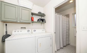 Main/Master Bath - This bathroom is accessible directly from the master bathroom and also from the hallway. The vanity is in the laundry room and the toilet and tub/shower are separate and adjacent so that you can use the shower or toilet with privacy while someone else is using the vanity or washer/dryer.