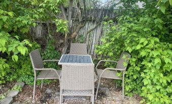 The conveniently located dining area provides comfortable seating for 6 adults. 4 additional dining seats and a small table are available in the backyard.