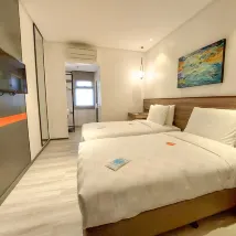 Расположение идеальное, так как торговый центр рядом, но обслуживание не очень. Удобства немного хлипкие, например, стекло может быть басаг, кондиционер не такой холодный, как в отеле. Процесс регистрации очень медленный, ожидание.