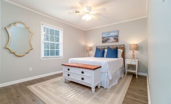 Perfect! The location is central to the island…across the street from putt putt and go carts AND very close to the Capt’s Kitchen Food Truck!! Short, easy walk to a very quiet area of the beach. The house is beautifully furnished, comfy beds and well equipped! It has an easy layout with everything on the same level. We had 5 adults and plenty of room! There were 5beach chairs and a couple of bikes - all in great condition. The refrigerator in the garage was perfect for keeping bottled water to grab on our way out to the beach. Plus - Preston was amazing with his communication and responsiveness. Def would stay here again. 😊