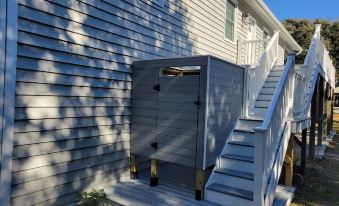 - Outdoor shower and storage room under the house with an extra refrigerator and plenty of room for your beach supplies