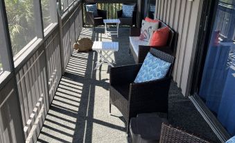 You’ll have assigned covered parking plus an extra space for another guest within the 8 unit complex. We are 'Kid friendly with Pack-n-play, highchair, & stroller'. Our building is on the beach but our unit faces the intercoastal not the beach. Community Grill and Firepit on the beach.