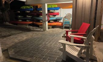 We have a community grill and beach chairs for your enjoyment on the ground patio area. We also have a firepit on the beach, along with kayaks and paddleboards to enjoy!