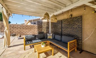 Welcome to the Boho Bungalow, an oasis in the heart of Indio just over 1 mile from Coachella & Stagecoach, surrounded by 15+ golf courses within a 10 mi radius. Our newly remodeled home comfortably sleeps up to 8 guests, featuring 3 bdrms, 2 bath and includes a massive 30 ft pool accompanied by large jacuzzi and cabana seating area. Whether you're heading to the desert for a festival, golf trip or just some R&R, the Boho Bungalow is the perfect modern retreat for your desert getaway.