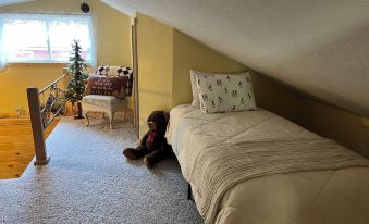 My kids loved staying at this cabin! It was great they could all have their own beds. We also enjoyed the large yard with a creek and firepit. I am thankful nobody in our family was over 5'9" because that would've been tricky with the ceiling height. After enjoying Lava Hot Springs and tubing, all 5 of us were able to take quick showers and the hot water didn't run out! You just never know with tiny homes what the water heater size will be, so we were relieved it was sufficient.We had such a great time!