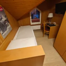 Он расположен совсем рядом с Западным вокзалом Интерлакена, в 5–10 минутах ходьбы. Рядом с железнодорожным вокзалом находится торговая улица Интерлакена. Рядом с отелем находится большой кооперативный магазин. Если он закрыт по воскресеньям, можно сходить в кооперативный магазин на торговой улице. Рядом с отелем есть ресторан кантонской кухни с хорошей едой. Я видел на Google Картах ресторан с сырным фондю, который очень высоко ценился, но в этот раз у меня не было времени туда заглянуть. Хотя ванная комната и туалет общие, похоже, я был ими единственным. Одноместный номер находится на чердаке, и днём там очень жарко. Выключение света и открытие мансардного окна на ночь немного смягчают жару.