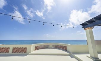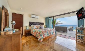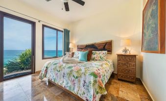 The rooftop is like a special place with a cool bar where you can watch big cruise ships pass by or look at the stars at night. Two of the bedrooms have the best view of the Caribbean and the pool, and another bedroom has the same awesome view. There's also a fourth bedroom we call the Casita, all by itself for some extra privacy. Every room has its own bathroom for your comfort.