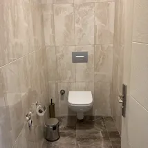 Туалет находится в отдельной комнате; большая часть комнаты отведена под туалет. Дизайн неудачный; нет звукоизоляции. Удобное расположение рядом с метро.