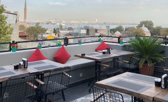 Breakfast in the roof top with beautiful views. The staff is a bit rude, but from my one-day experience in Istanbul, that's normal there.