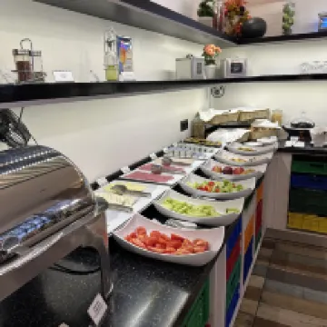 Номер был нормальный, хорошее соотношение цены и качества, а расположение — всего в двух остановках от трамвая, что делало его подходящим для поездок на выставки. Однако завтрак «шведский стол» остался прежним, и обслуживание было приемлемым, за исключением того, что я не смог заселиться раньше в тот же день и выехать раньше после того, как мой начальник изменил свой рейс.